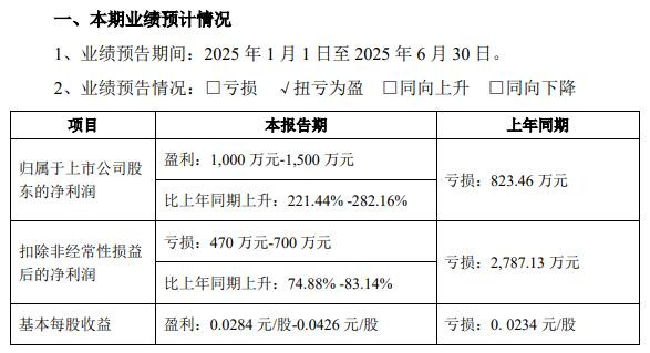 海得控制2025年半年度业绩预告显示,预计2025年上半年归母净利润1000万元至1500万元,上年同期亏损823.46万元;扣非净利润亏损470万元至700万元,上年同期亏损2787.13万元。